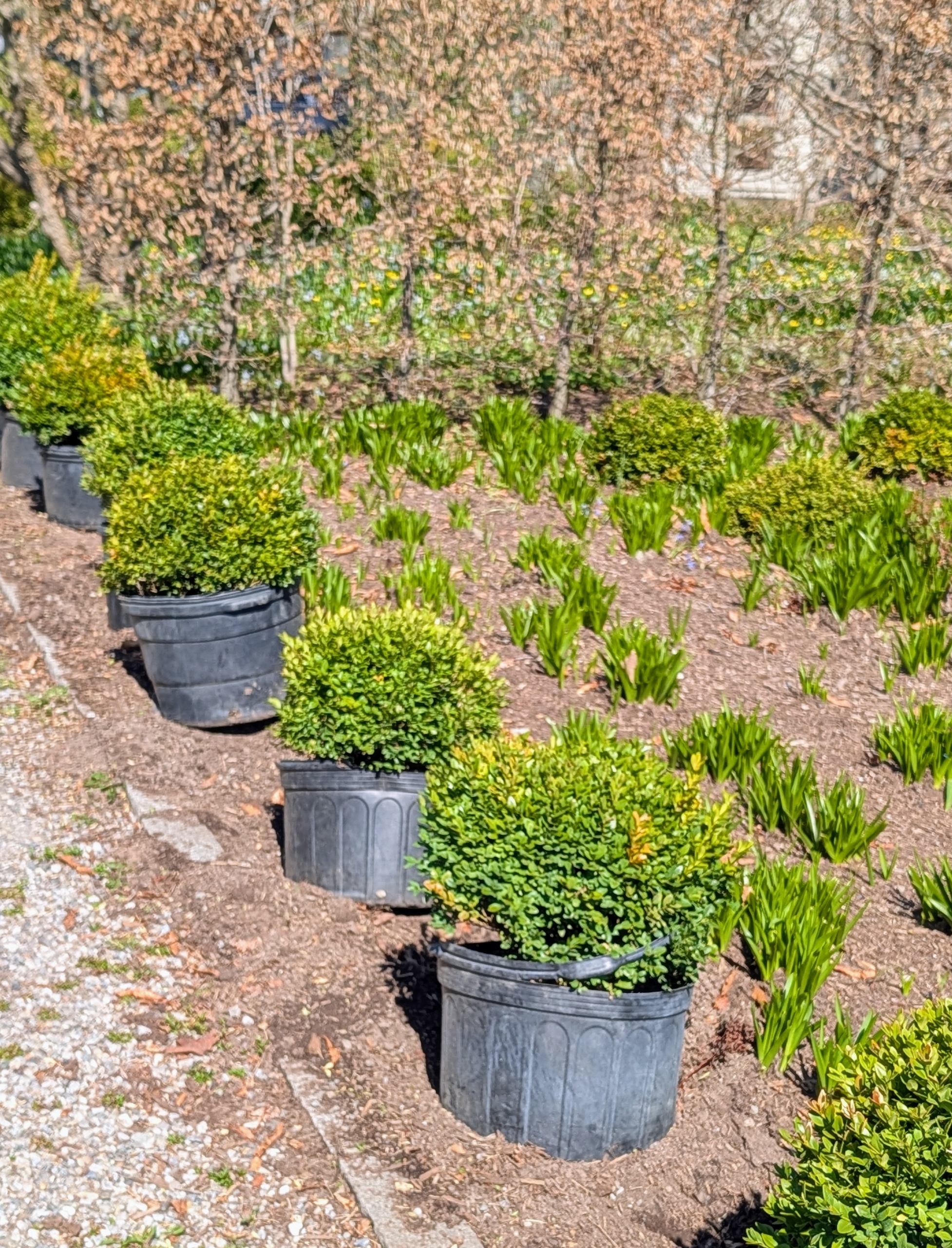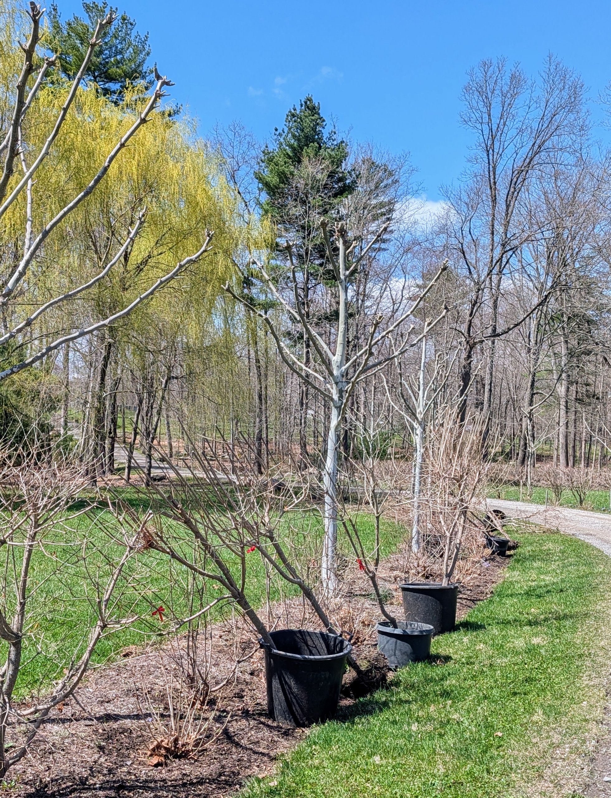 - This allée of London plane trees and smoke bushes is doing well. They will look great when full of foliage.
