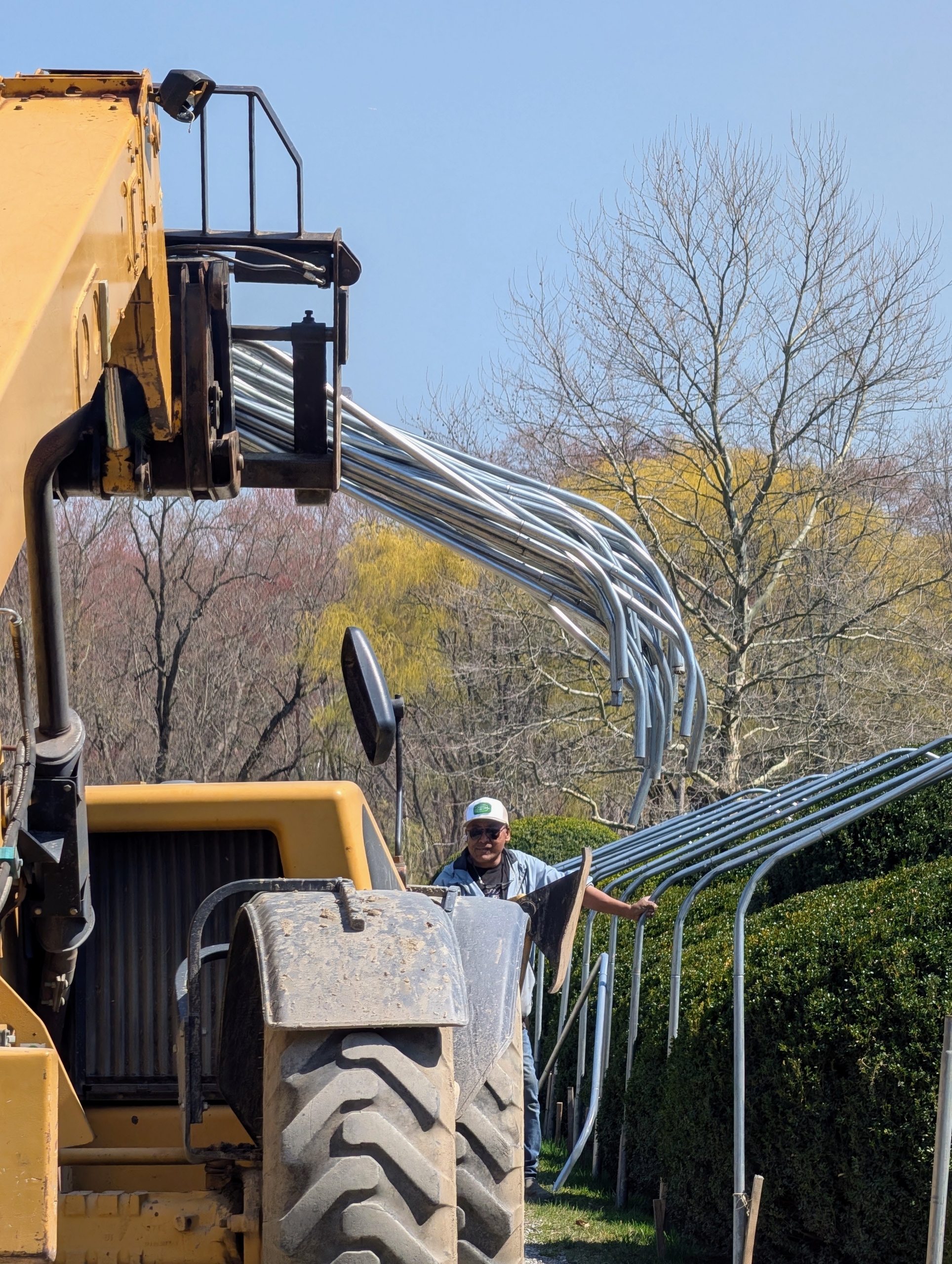 - Pete uses our trusted Hi-Lo to hold and move the metal arches.