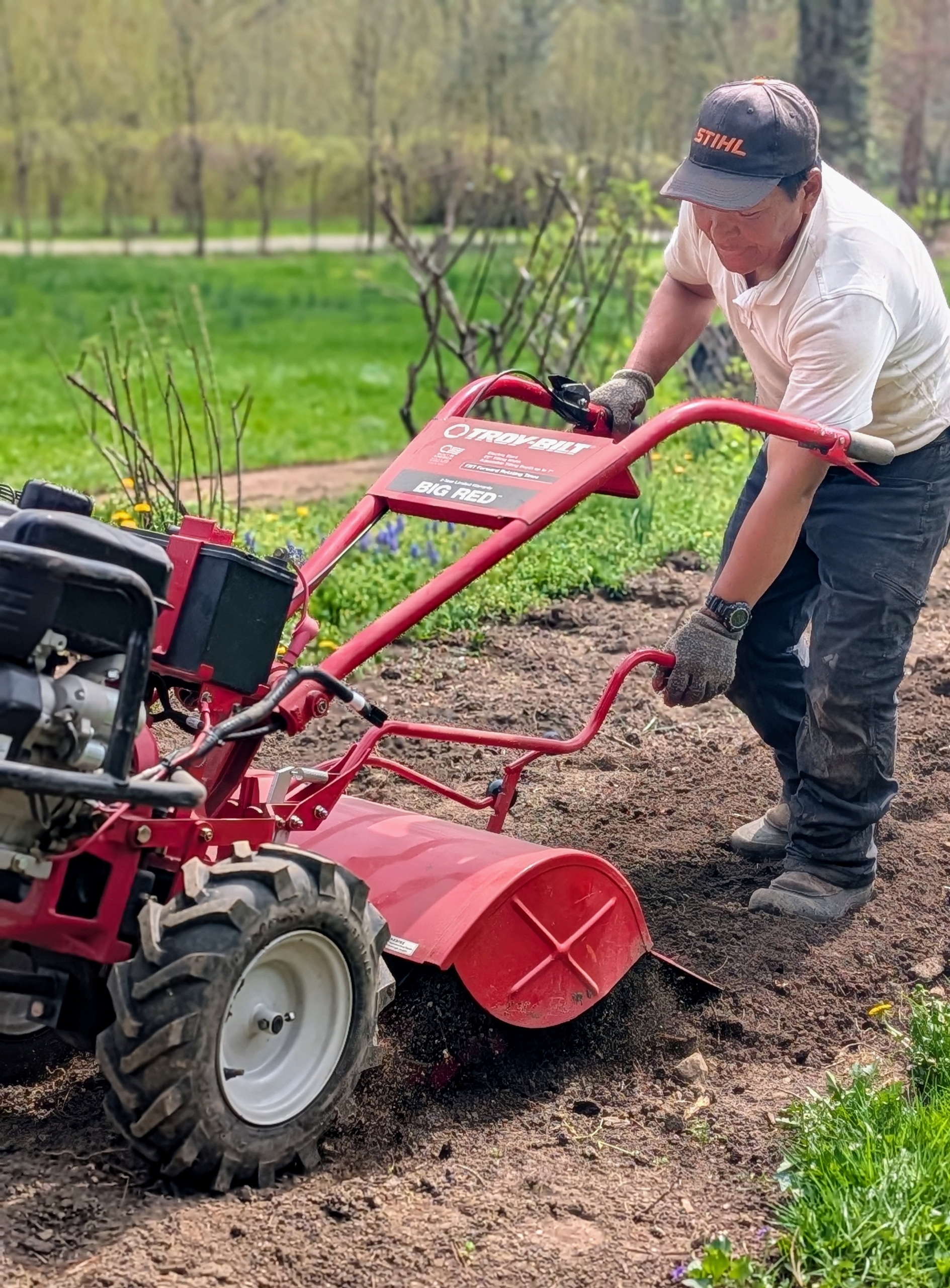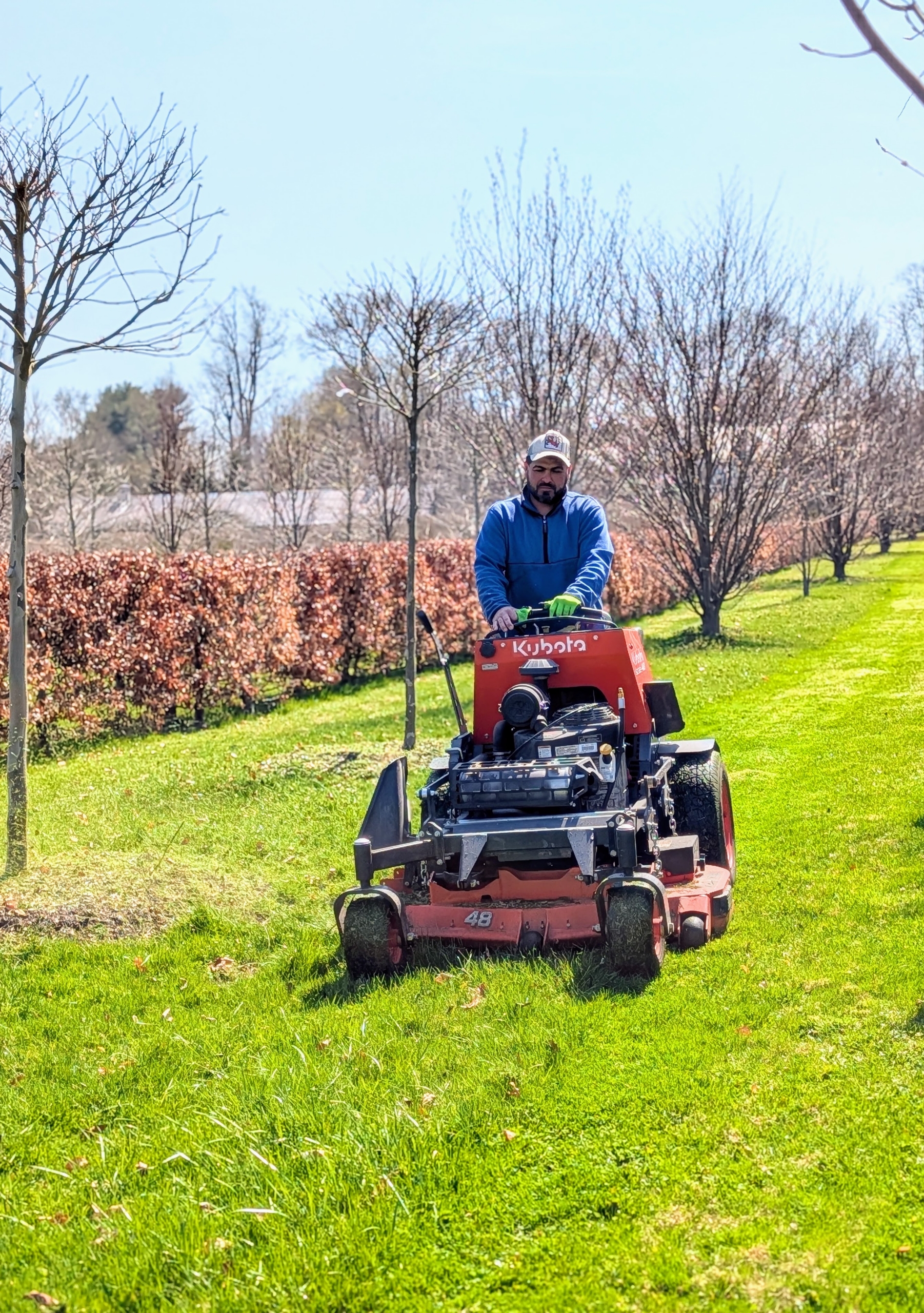 - And here’s Adan. He’s aerated all the lawns and is now starting the mowing. Spring is in full swing!