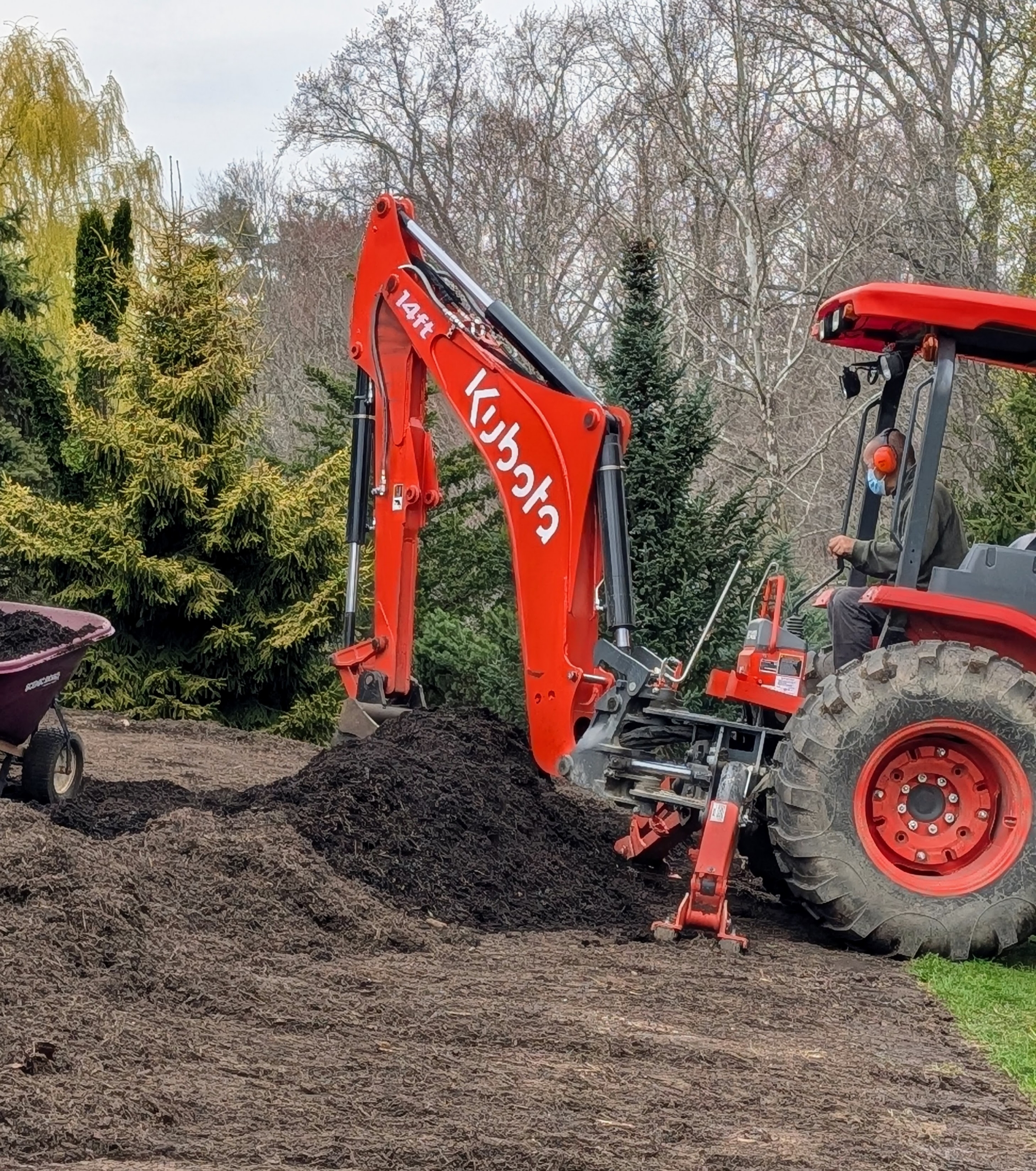- Behind my vegetable greenhouse, Chhiring maneuvers the Kubota tractor bucket to carefully remove the compost that has been protecting the dahlias all winter.