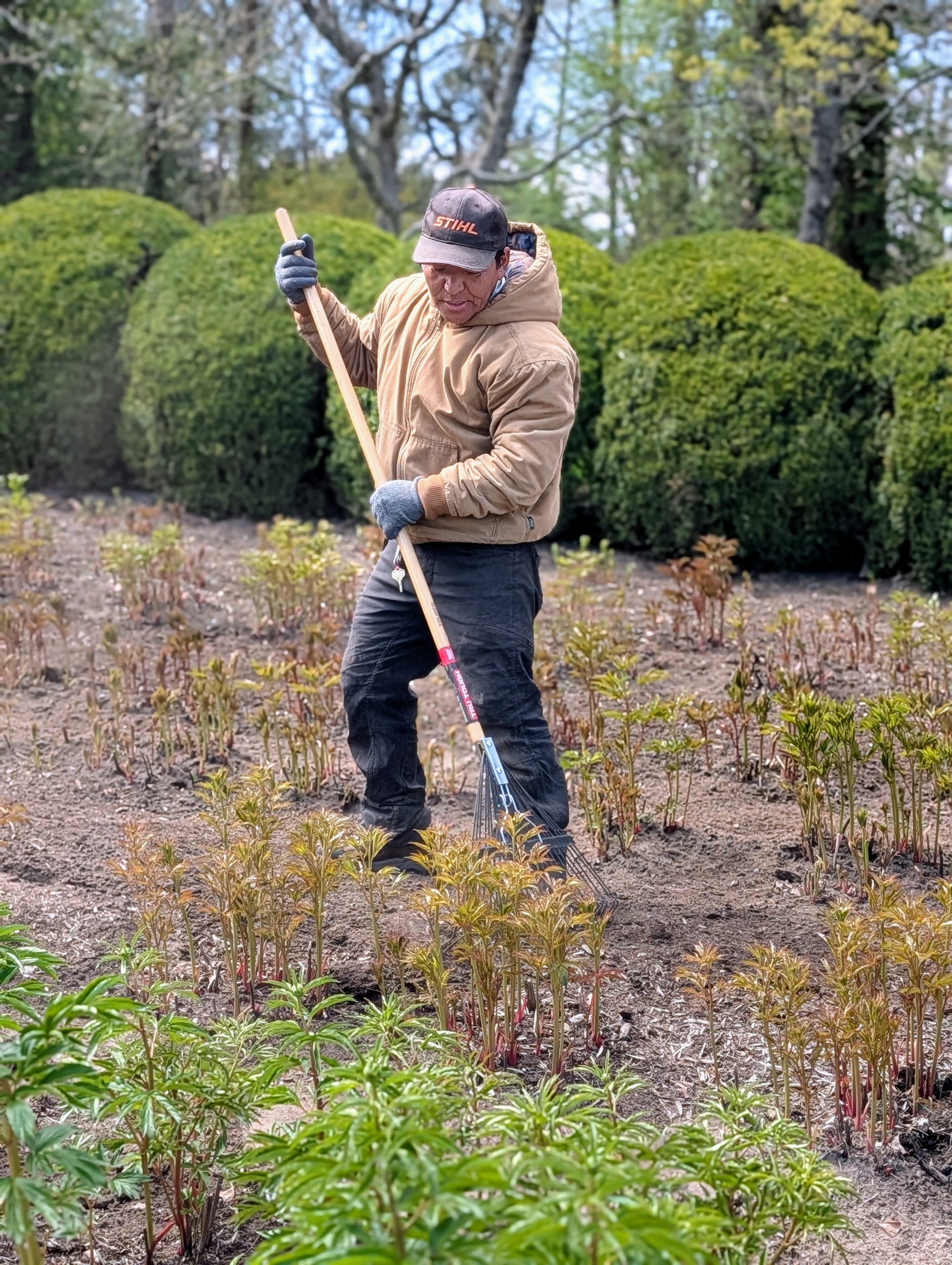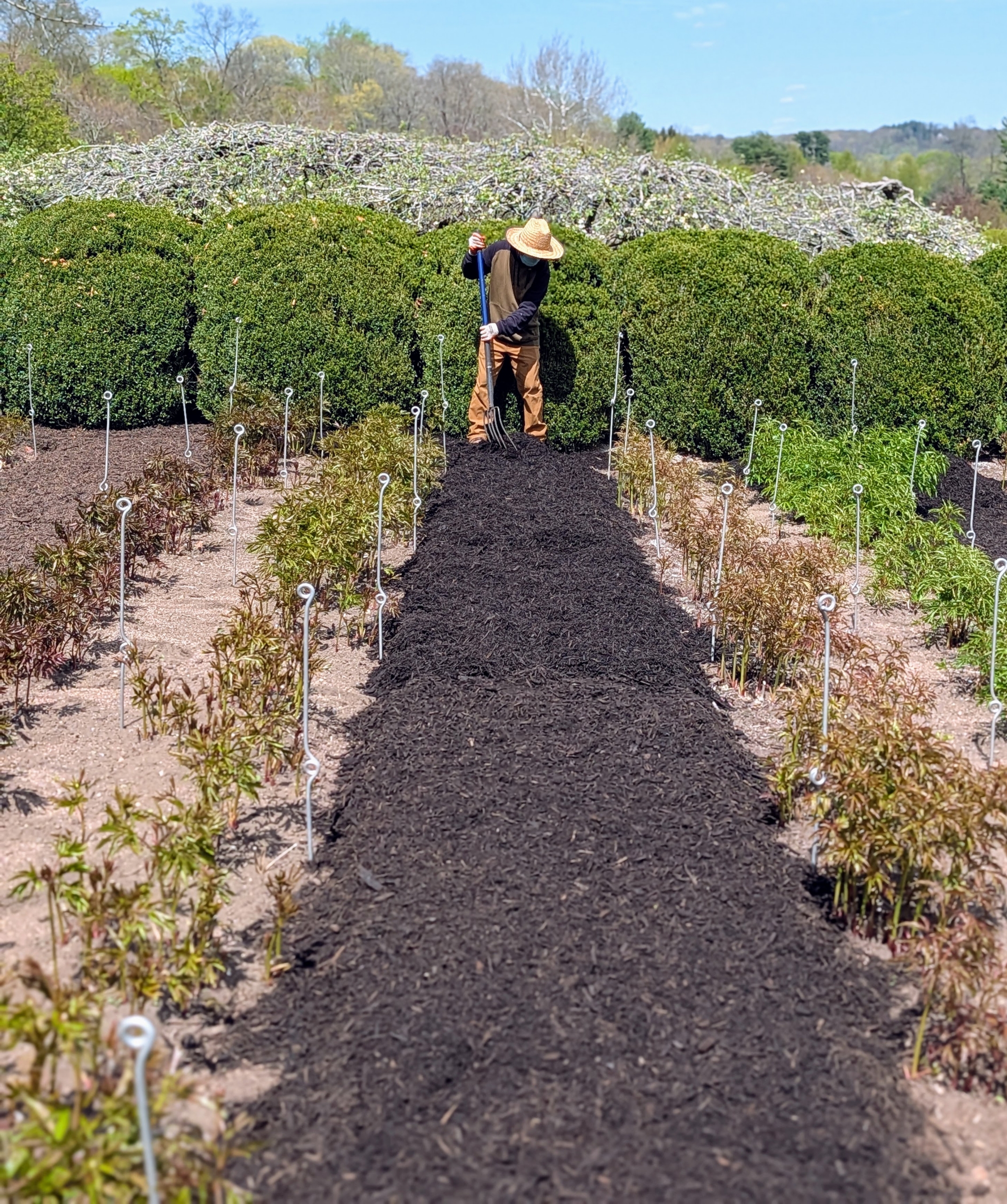 One of the most anticipated sights on the farm is my herbaceous peony garden in full bloom. No garden is complete without these beautiful plants, which show off their large, imposing flowers in May and June. True perennials, herbaceous peonies can live for 100-years, becoming more impressive over time. This week, my gardeners and outdoor grounds crew tended the beds - adding food, mulch and compost, and then carefully staking all the rows of plants so the massive flower heads don’t droop to the ground.