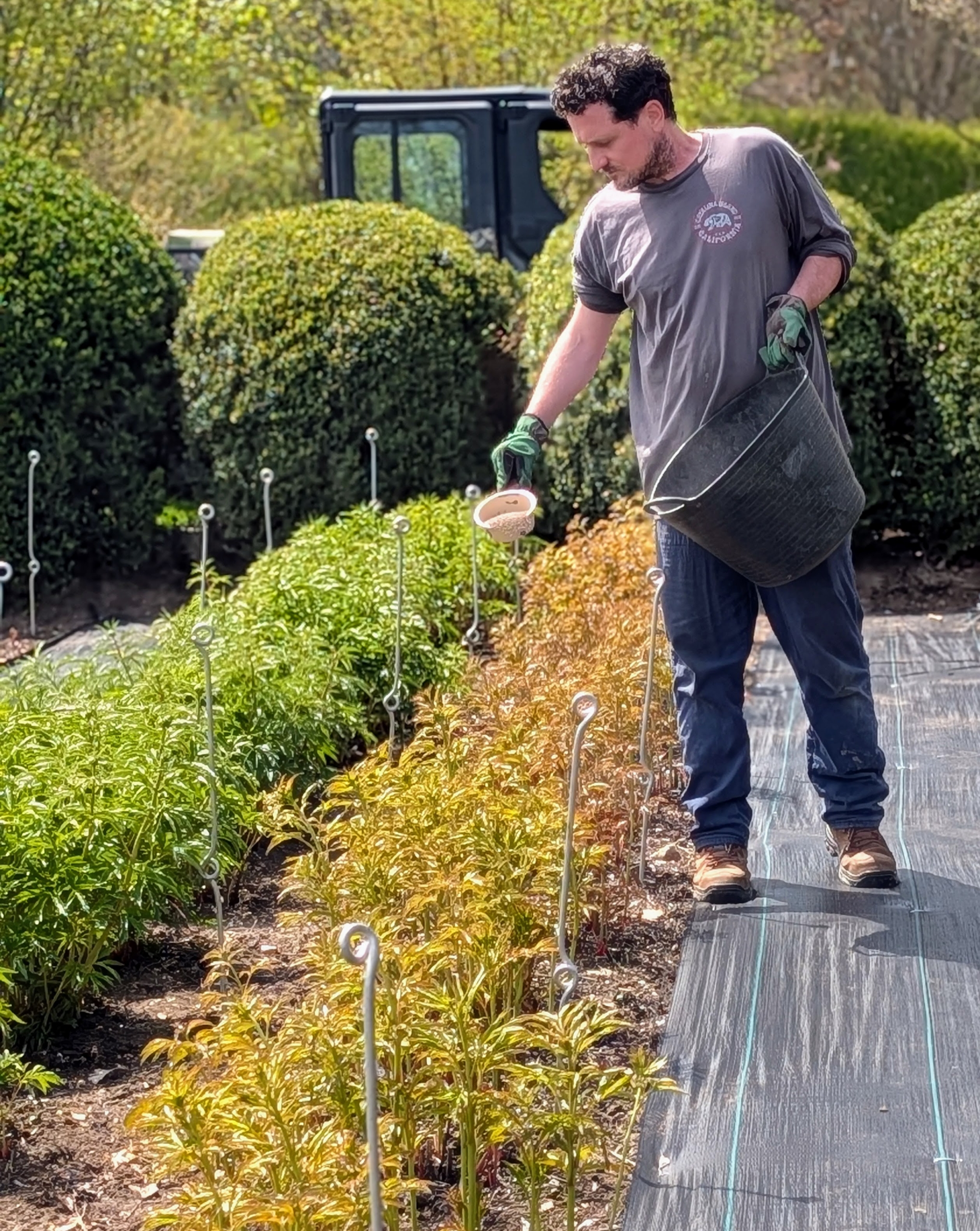 Meanwhile, Ryan feeds the peonies with azomite. Azomite is a natural, broad-spectrum mineral powder mined from volcanic ash. It contains more than 60 essential elements, including magnesium, calcium, potassium, silicon, and many micronutrients. It helps remineralize the soil for optimal growth, flowering, and resilience.