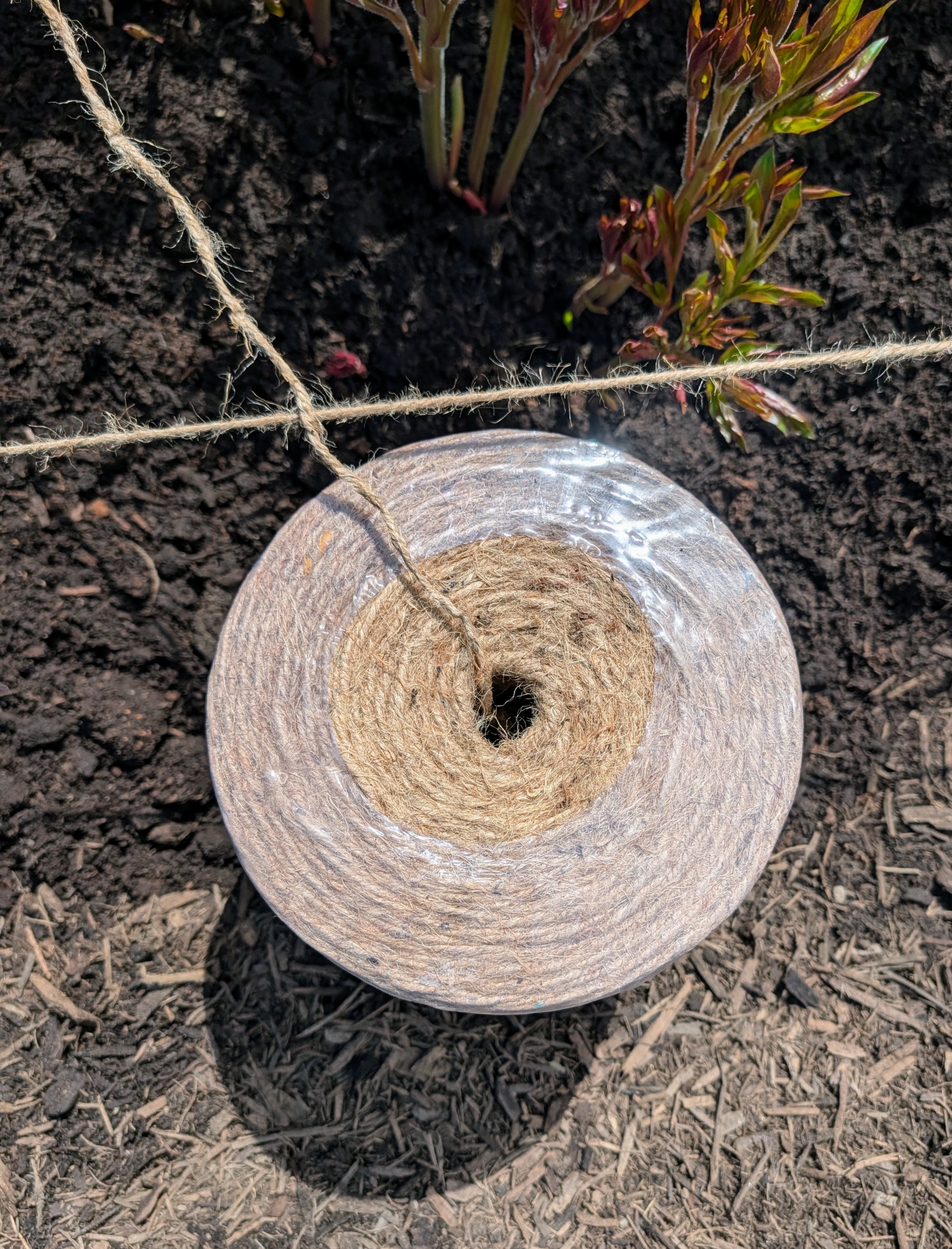 We use a natural jute twine for this project and for many gardening projects around the farm. Twine like this is available in large spools online and in some specialty garden supply shops.