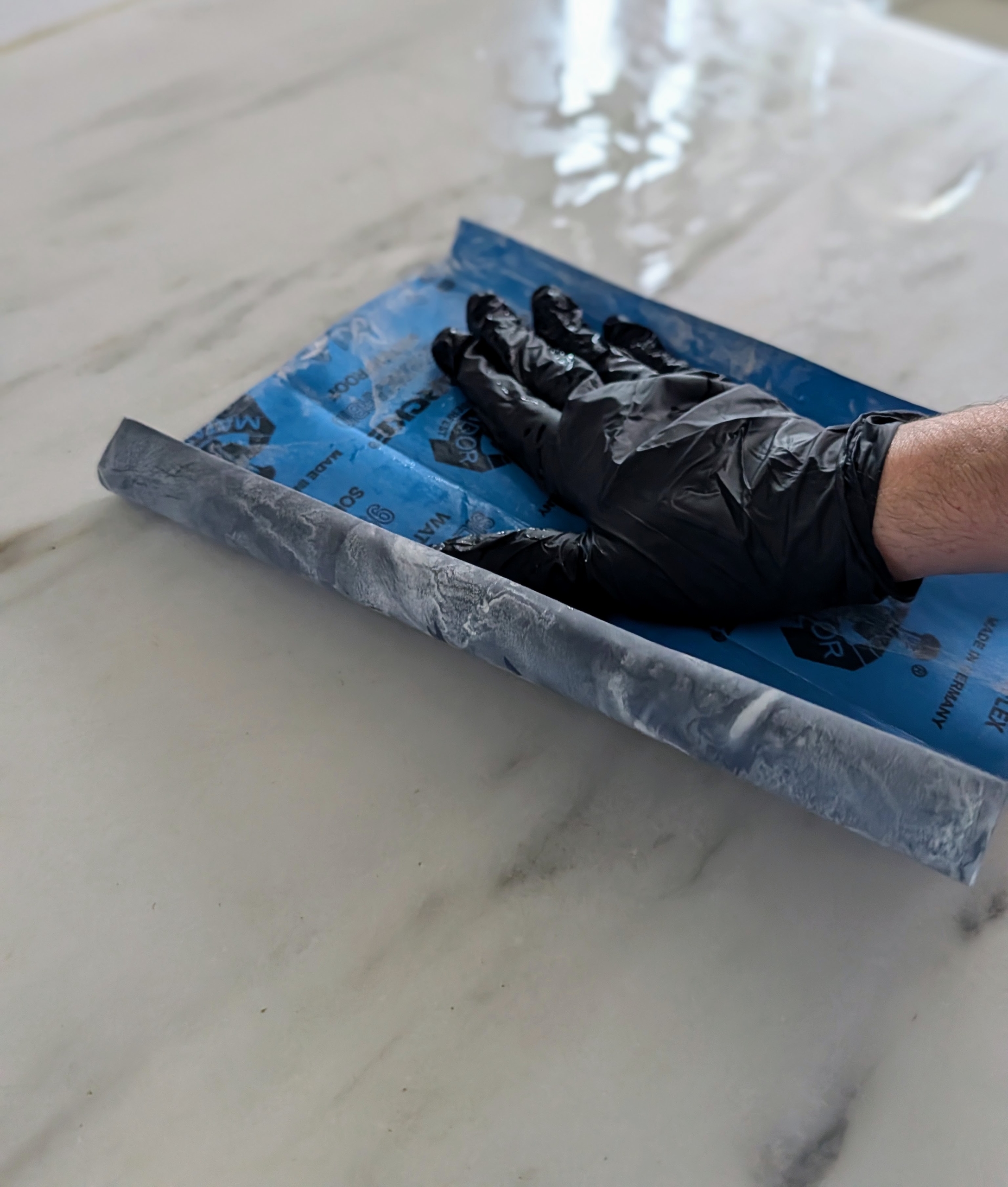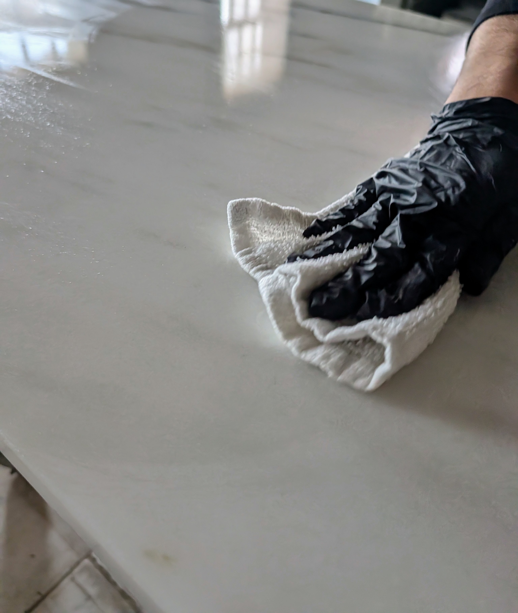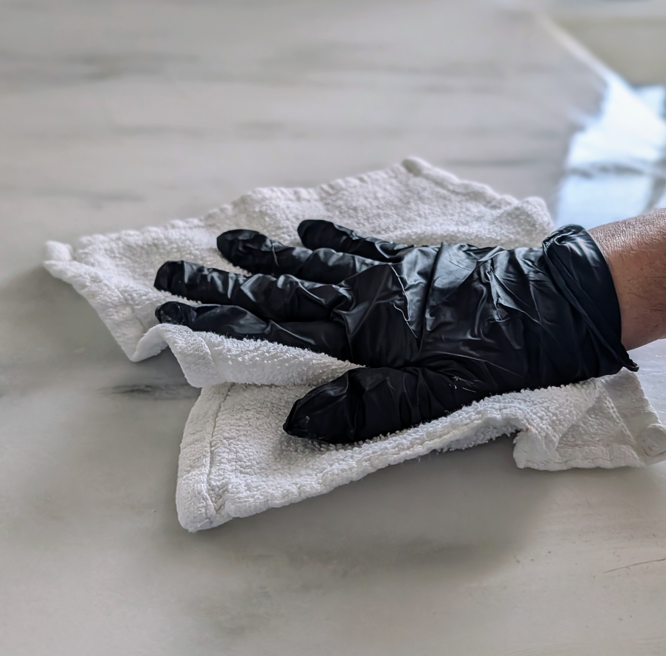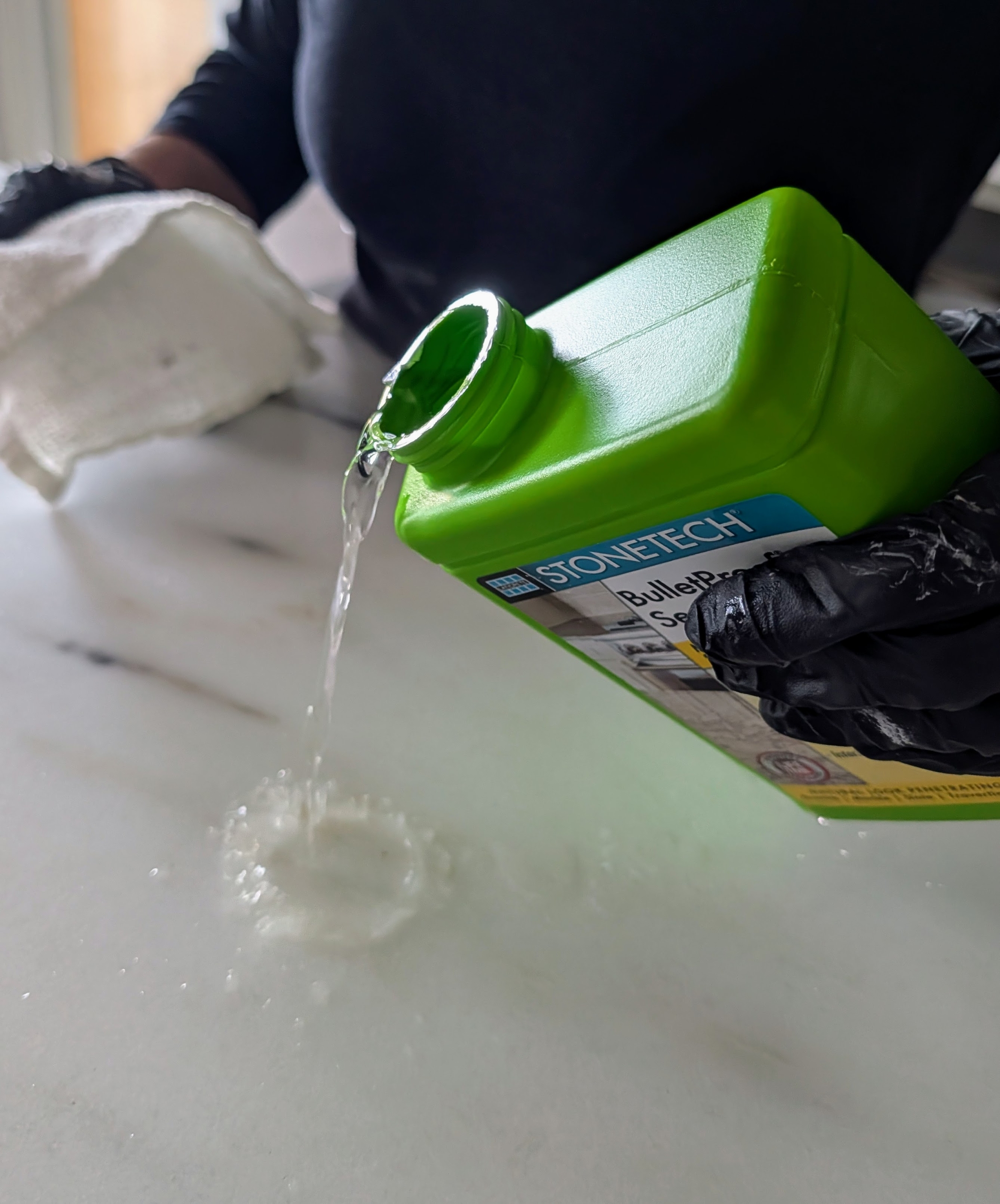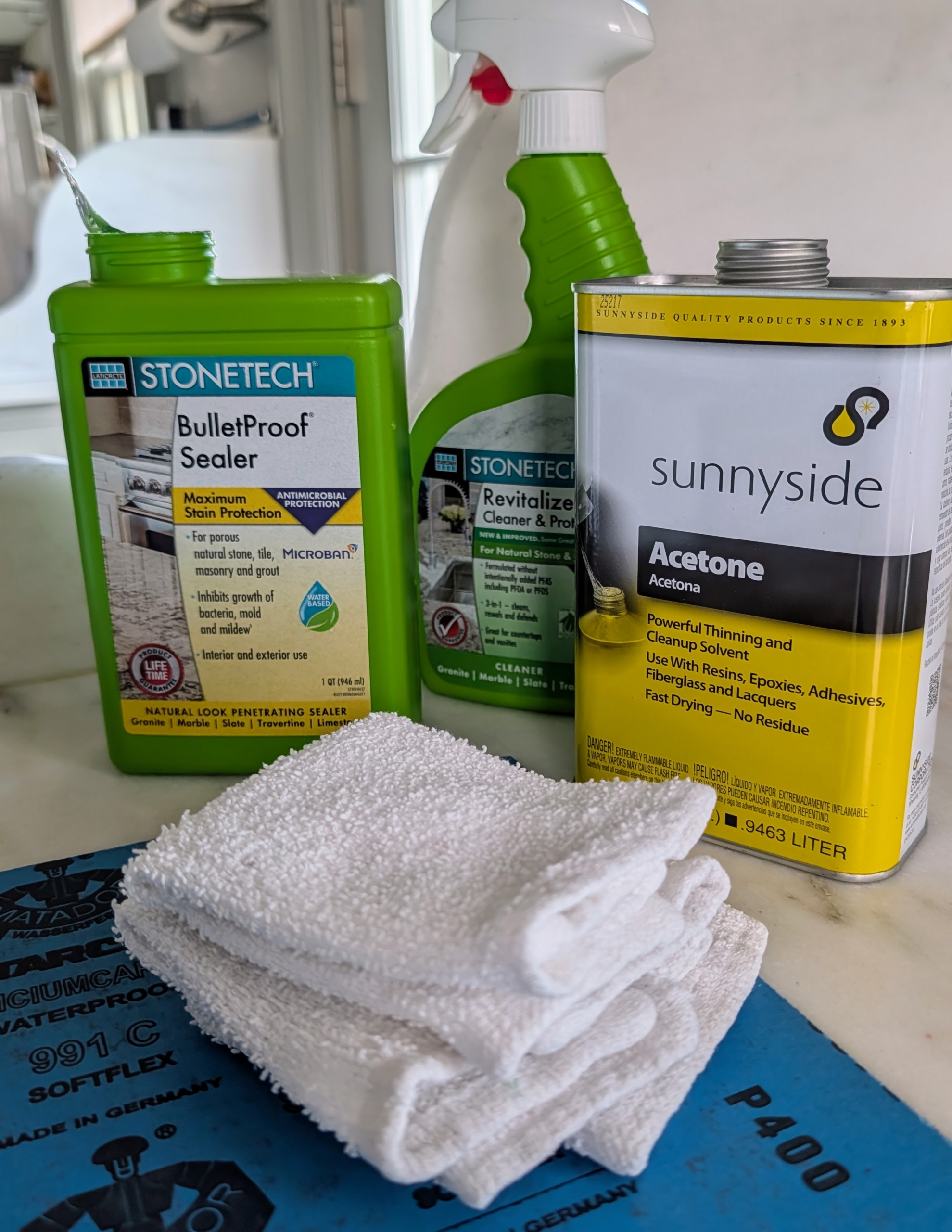 Like many of you, my kitchen is the main "hub" of my home. It's where I eat meals, meet with staff, and do a lot of my paperwork - all on my marble kitchen counters. And while they get cleaned frequently every day, after time they do get marks and rings typically caused by acidic substances that react with the calcium carbonate in the marble. Cleaning them with the right products was the next big chore on my list.