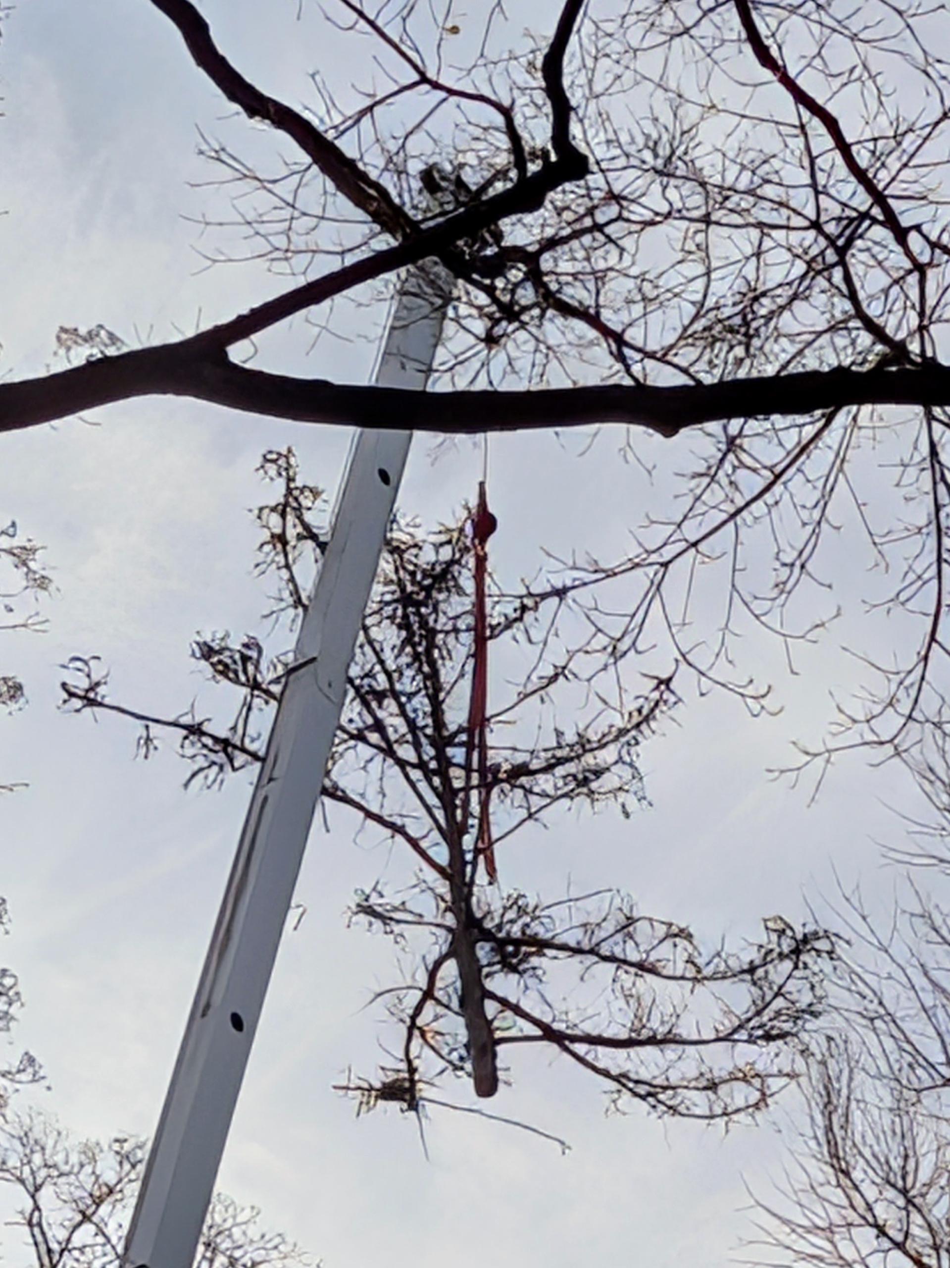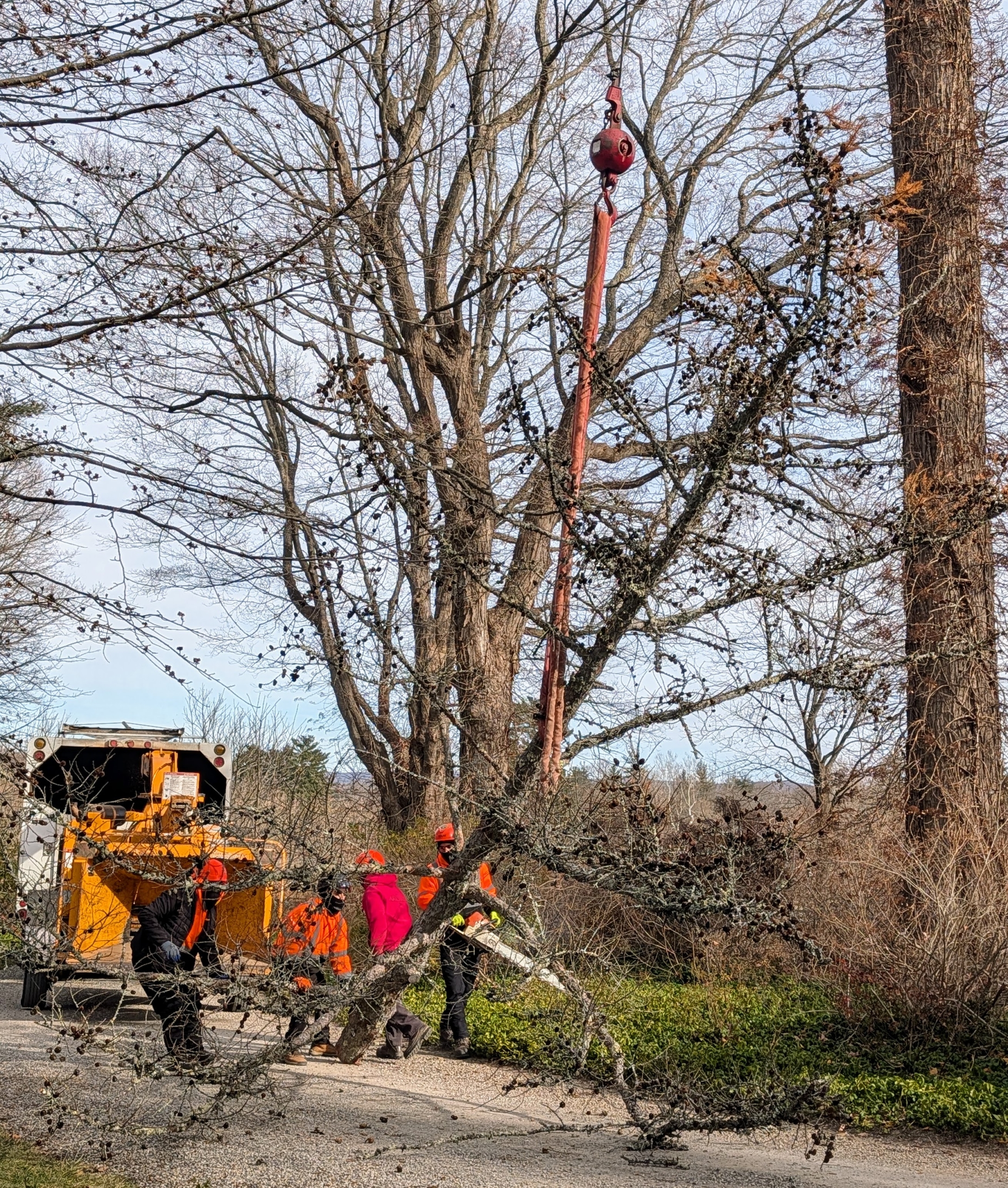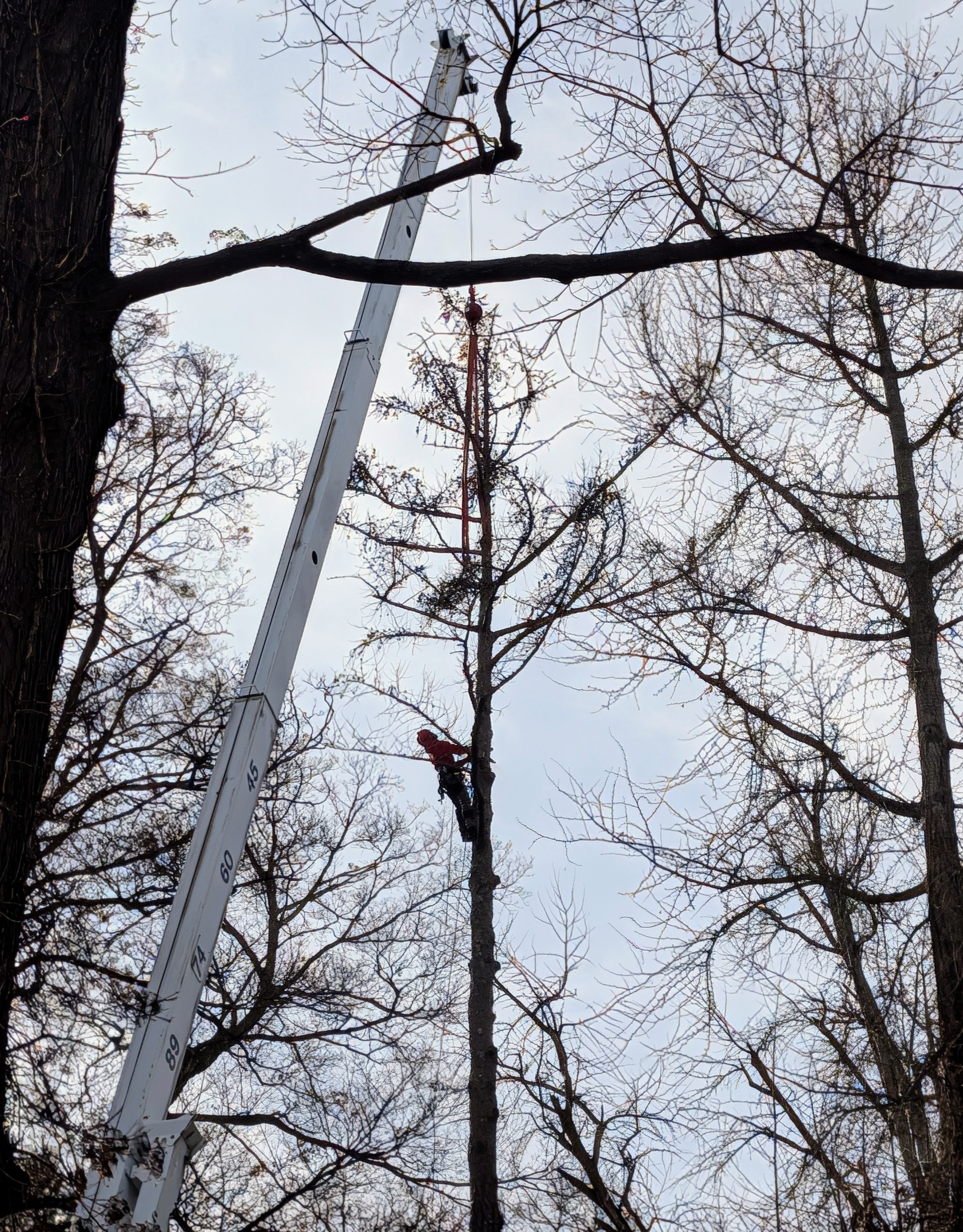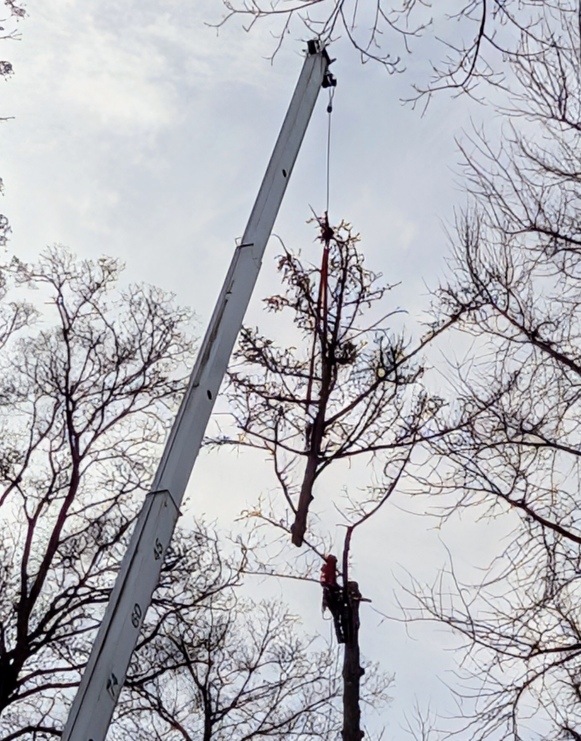 The Arborist crew came with their own equipment including a crane that could reach the top of the trees easily and efficiently.